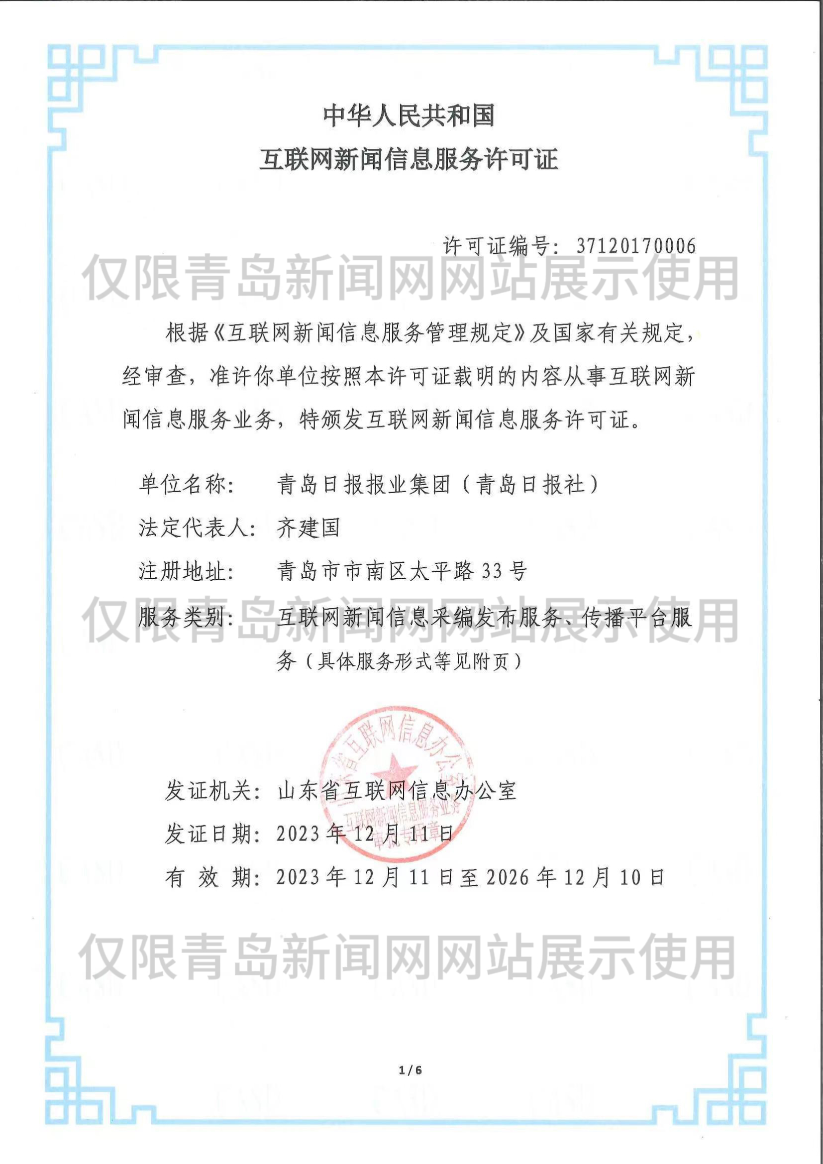 為確保在國際互聯網上所發布青島新聞信息的正確政治方向,便于網上新聞發布的把關,青島新聞網絡傳播有限公司是青島日報報業集團各報(刊)及其網絡版在國際互聯網上進行信息交換、交流的代表和制作、發布人,全權負責青島日報報業集團各報(刊)及其網絡版的對外信息交換、交流業務。