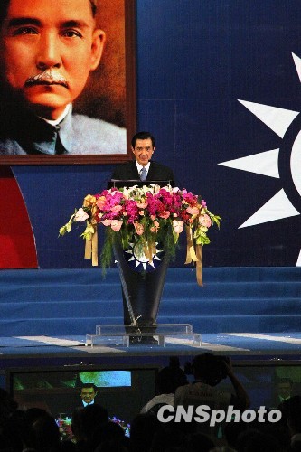 10月17日,中國國民黨第18次黨代會在臺北縣新莊市舉行。馬英九發表就職演說表示會持續推動國民黨與對岸的交流。 中新社發黃少華攝