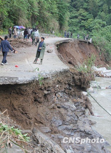 ?5月8日,搶險人員在湖南省婁底市新化縣奉家鎮對被洪水沖毀的公路進行搶修。強降雨近日頻襲湖南,目前強降雨已致湖南省婁底、懷化、衡陽、株洲、湘潭、邵陽、郴州7市169萬人受災,13人因災死亡或失蹤,緊急轉移人口28597人,倒房6114間,造成直接經濟損失13.63億元。 中新社發 郭國權 攝