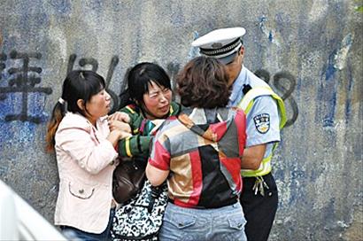 ????記者注意到,一名20多歲的削瘦男子坐在面包車北面的一堆沙土上,低著頭唉聲嘆氣,不時(shí)哽咽幾聲,口里低聲說著“都怪我,都怪我啊”。“這個(gè)男子是小男孩的父親,他坐在那里難過了好長(zhǎng)時(shí)間了。”現(xiàn)場(chǎng)一名市民告訴記者。過了一會(huì)兒,一輛出租車?yán)瓉韼酌樱渲幸幻右幌萝嚲湍_步踉蹌,哭著跑向現(xiàn)場(chǎng),跟她同行的幾名女子趕緊將她抱住,這名女子癱坐在地上,頓時(shí)哭得死去活來。