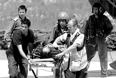 一名傷員被送往耶路撒冷的醫(yī)院救治。新華社/法新