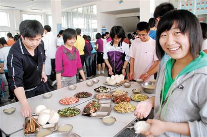 早報訊 為了讓考生吃好住得方便,即墨教體局將4個考點共4810名考生安排到就近的學校食堂用餐和學生公寓休息。昨天中午,記者在即墨實驗第四小學食堂看到,學校為350多名考生安排了頭場考試后的第一頓 “十菜一湯”午餐。據介紹,即墨學子3天的餐飲安排,都是由教體局統一制訂的菜譜,并安排衛生監督人員現場監督。 第一頓飯吃得香 “第一場考試出來,就能吃上這么豐富的午餐,真是不錯。”昨天中午12時許,高考第一場語文考試結束后,記者在即墨市北中學考點看到,350多名考生在老師的帶領下,有序地進入附近不到百米遠的用餐學校——即墨實驗四小學食堂,當學子們看到餐桌上的十菜一湯后,臉上笑開了花。食堂餐桌上擺著兩個魚類及其它海鮮,還有幾個肉類、青菜等,10個菜加上一份紫菜雞蛋湯,營養搭配十分合理。 一日三餐統一安排 據即墨教體局相關負責人介紹,即墨今年的高考考生共有4810名,為了讓考生吃到豐富的營養餐,即墨教體局和衛生部門聯動,統一為每個考點制訂了合理的食譜。早餐為考生安排了面包、雞蛋、稀飯、蔥花餅和4份小咸菜等;午餐包括魚、肉類、豆制品和青菜等10菜一湯,營養合理,每頓都有不同品種。據了解,衛生局專門派出工作人員,從4日下午就進入集體用餐學校,考生的每頓飯都由教體局和衛生防疫工作人員嚴格把關。 據介紹,高考3天,每名考生只需交200元食宿費,不用家長操心就能完成整個高考。 考生住上“標準間” “原本能住900多名學生的公寓,現在只安排了350名考生。”昨天上午,記者在即墨實驗第四小學學生公寓看到,考生走出考場后,不用5分鐘就來到了臨時休息的宿舍。即墨實驗第四小學副校長張東旭告訴記者,他們小學是一所全日制寄宿學校,與高考點只有一墻之隔,學校公寓能入住900多名學生,但為了能讓考生有個安靜的休息環境,學校特意安排兩名或4名考生住一個房間,并且配上開水間和洗澡室,保證大家休息好,有足夠的精力迎接下一場考試。 (康曉歡 韓文梁 攝影報道) |