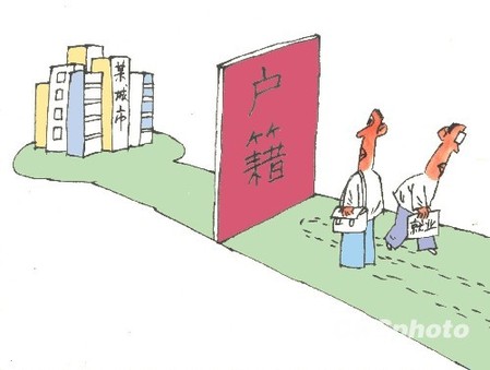 漫畫:戶籍壁壘 中新社發 羅琪 攝