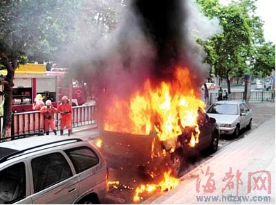 ????早上6點,最先給海都熱線通968111報料的張先生說,當時他正好經過文化宮,看到了這一幕。火是從車廂里燒起來的,火苗很高,燃燒時,還有“砰砰”的爆炸聲。隨后有市民報警。