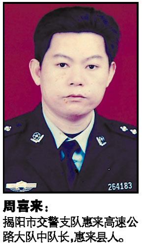 昨日,記者從廣東省公安廳獲悉,前日晚,揭陽市公安局交警支隊惠來高速公路大隊兩名民警在執勤中被歹徒槍擊,經搶救無效殉職。
