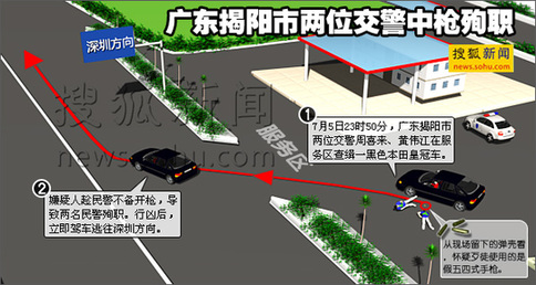 有知情民警透露稱,殉職的兩名民警身中6槍。“中隊長周喜來身中4槍,其中有一顆子彈擊中頭部;民警黃偉江身中兩槍,其中有一槍打穿了胸前動脈。”