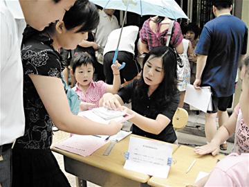 ????根據(jù)相關(guān)規(guī)定,新生報名時家長須同時持公安部門核發(fā)的兒童隨父母或祖父母(外祖父母)同戶、同住的戶籍卡(本)、與戶籍情況一致的住房產(chǎn)權(quán)人的房產(chǎn)證(房卡)報名、健康體檢證明及預(yù)防接種手冊。但記者在現(xiàn)場看到,不少“馬大哈”的家長因?yàn)樽C件不全,而不得不在家和學(xué)校之間來回奔波。“這已經(jīng)是第三趟了,忘帶預(yù)防接種手冊了。”一位家長告訴記者。