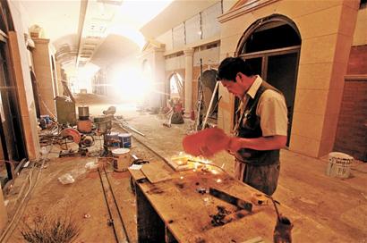 ????昨天,記者在“地景大道”內看到,在已經基本裝修完畢的商業街區“隔壁”,還有一條通道也在緊張施工,但其中并沒做任何的切割,也沒有任何現代裝修的痕跡。工作人員介紹,這是商業通道的一條輔道,是專門用來為游客提供休閑、娛樂的景觀通道。