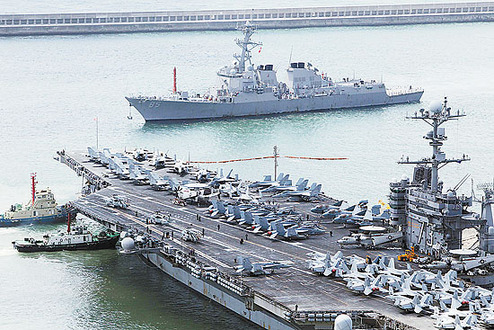 韓國國防部新聞辦公室25日向記者證實,包括美國海軍“喬治·華盛頓”號航空母艦戰斗群在內,韓美多艘艦艇當天清晨7時離開南部的釜山港前往東部海域,標志著名為“不屈意志”的韓美聯合軍演正式開始。