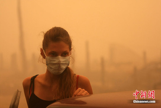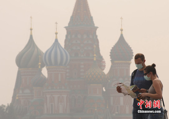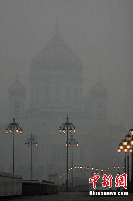 ????罕見熱浪引發的熊熊大火肆虐俄羅斯大片地區。截止8月4日,火災已造成48人喪生,許多村莊和森林被毀。首都莫斯科也被一層厚厚的煙灰覆蓋。圖為大火引發的濃煙已經籠罩了莫斯科。