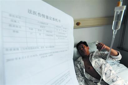 ????昨天下午,記者來到第九人民醫院外一科,李師傅正在病房里打吊瓶,他的左臉有明顯的青色瘀腫,他躺在病床上直說頭痛。回憶起被打的經過,李師傅一臉的無奈。據李師傅介紹,前天下午3點左右,他接到通知觀音峽路26號有一位老人骨折,需要緊急送往醫院,他立刻駕車帶著醫護人員前去,醫護人員上樓后,他就在樓下等待。