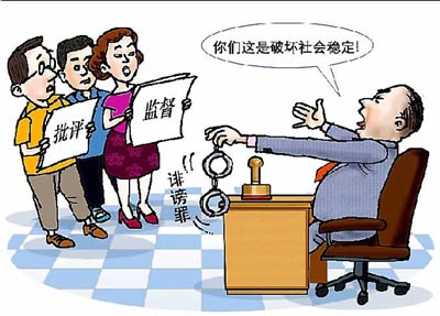 ????在那些所謂“誹謗案”中,“誹謗者”很多采取了網上發帖、群發短信等非傳統方式表達觀點,正是由于網絡這類新興媒體的廣泛傳播性,“被誹謗者”往往以“危害社會穩定”的名義動用公權力,對“誹謗者”進行處置。