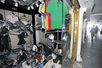 ????“我在這個地下通道賣服裝已經(jīng)12年了,今年8月1日剛剛交了8萬元,續(xù)了一年的租約,沒想到還沒到月底就發(fā)生了這種意外,現(xiàn)在10多萬元的貨被水泡了不算,服裝店至少元旦前都沒法正常營業(yè)。”其中一家服裝店的老板宋先生告訴記者。記者在地下通道內看到,因為變電站也被水浸泡了,地下通道一時間沒法恢復通電,過往行人只好打著手電摸黑前行,為了保存證據(jù),38家商鋪鐵門緊鎖,很多卷簾門上貼了因為大水停業(yè)裝修的便條,一名店主無奈在自家店門口支起了桌子代售電影票。記者看到大部分的商鋪老板站在建筑工地邊等待,宋先生打開自家的商鋪卷簾門告訴記者,發(fā)大水時他只來得及從店里抱走筆記本電腦,再回來搶救貨物時,手機錢包和4000多元現(xiàn)金都落在桌子抽屜里,連同滿屋的衣服都被污水泡了。
