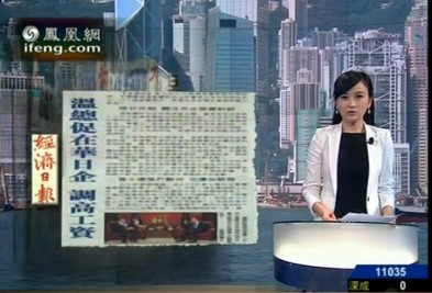 ????鳳凰衛(wèi)視8月30日《鳳凰早班車》節(jié)目播出“溫家寶會見岡田克也促在華日企調(diào)高工資”,以下為文字實(shí)錄: