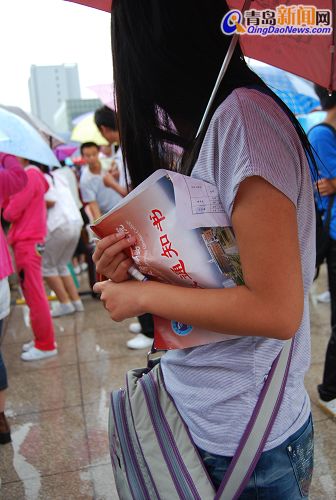 手拿錄取通知書(shū)等待辦理手續(xù)的新生