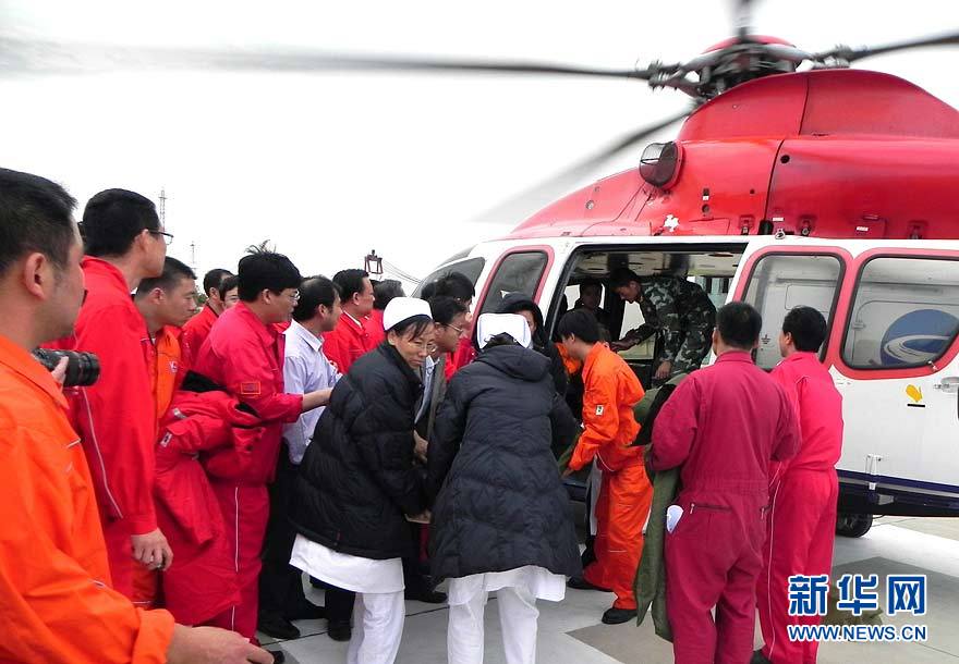 9月8日,醫(yī)護人員在轉運被困人員。 9月7日23時,山東東營勝利油田位于渤海的作業(yè)3號鉆井平臺,因傾斜遇險,平臺上4人落水,32人被困平臺。中國海上搜救中心連夜救助,目前已有34人獲救,救援人員正在全力搜救2名失蹤人員。新華社記者 朱崢 攝