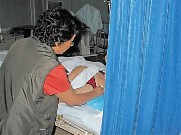 ????記者隨后在401醫(yī)院搶救室見到了溺水的袁女士,袁女士躺在醫(yī)院的一張病床上打著點滴,嘴唇發(fā)紫,身體依舊很虛弱,參與救人的王大姐在一旁照顧。“沒想到游個泳會出這種事,真是麻煩這些大姐了。”看著在一旁照顧的王大姐,袁女士感激地說。她告訴記者,她家就住在離浴場不遠處,從小就在三浴游泳,雖然漸漸上了年紀,但還是喜歡隔三岔五的到海水浴場游泳。早上7時,她游完一圈正打算回到岸邊,這時一個浪頭打過來,她當(dāng)場就感到一陣眩暈,接著又讓海水嗆了好幾口,隨后就啥也不知道了,等意識恢復(fù)后才知道危急時刻被幾名大姐給拖上了岸,這才撿回了一條命。 王壽林 王曉先 攝影報道