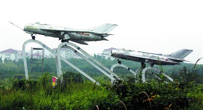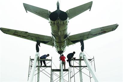 ????早報(bào)訊 昨日上午,兩架2007年退役殲偵六飛機(jī),在兩個(gè)拋物線支架上“騰空而起”,又在青島職業(yè)技術(shù)學(xué)院校園內(nèi)添了一道獨(dú)特景觀。