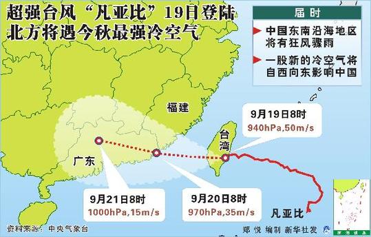 圖表:超強臺風“凡亞比”19日登陸 北方將遇今秋最強冷空氣 新華社發(fā)