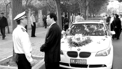 ????本報訊 (記者袁國禮)家住豐臺韓莊子二里小區的小王前天結婚,卻擔心自家門前道路太堵影響婚車通過。前天,豐臺新村城管分隊隊員6點提前上崗,為婚車“疏通”了道路。