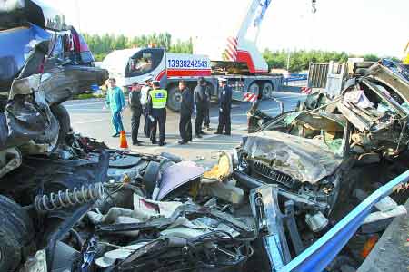 ????本報訊 昨日中午,鄭少洛高速K6+900米處,發生一起8車連環追尾相撞事故。據警方介紹,事故造成兩人當場死亡、四人受重傷,目前傷者都在搶救中。事故發生后,鄭少洛高速出現嚴重的交通堵塞,一度被迫封閉。昨晚8時,仍有眾多讀者給本報打來電話稱:鄭密路出現嚴重堵車,長達20多公里,大量車輛滯留。