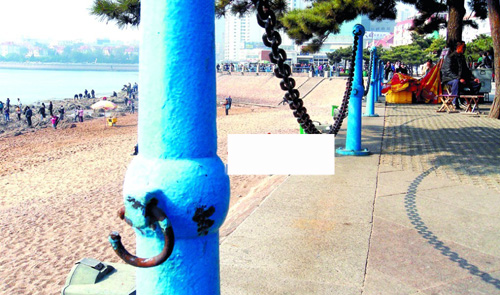 ????在隔著也就四五十米遠(yuǎn)的地方就是一間城管辦公室,記者上前詢問(wèn),里面的工作人員對(duì)事情還不清楚,說(shuō):“我們還不清楚呢,這個(gè)防護(hù)鏈不歸我們管,我看他們最近來(lái)做維護(hù)挺頻繁的,是不是他們拆下來(lái)做維護(hù)去了?”隨后,記者也聯(lián)系了海濱風(fēng)景區(qū)管理處,工作人員表示:“這個(gè)也不歸我們管,但我們發(fā)現(xiàn)后會(huì)及時(shí)通知相關(guān)部門(mén),盡快來(lái)處理。”