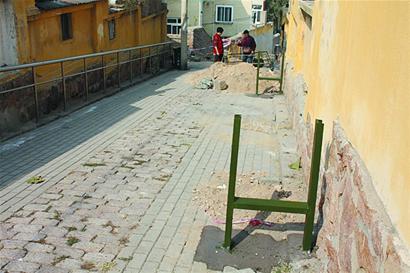 ????接到張先生的電話后,記者立即來到了魚山支路,發現施工方的管道溝已經挖到了魚山支路2號門口,在管道溝的上方,原來的不銹鋼扶手已經被拆除,取而代之的是一排安放管道的鐵架子?!比绻@里走明管的話,保溫我覺得不如埋地下好,一旦供暖,能保證新老用戶的家溫度達標嗎?”市民劉先生提出了自己的疑問。