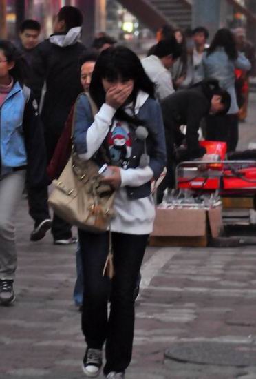 北風來襲 一些女士戴上了卡通口罩