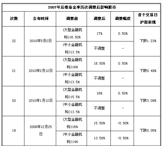 中國人民銀行決定,從2010年11月16日起,上調存款類金融機構人民幣存款準備金率0.5個百分點。