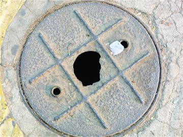 ????記者趕到現(xiàn)場(chǎng)看到,這個(gè) “鬧事”的古力蓋中間有一個(gè)破損的大窟窿,能伸進(jìn)去一只腳,古力井里還堆積了不少污物。此處古力蓋距離小學(xué)操場(chǎng)有十幾米,距離北仲路車(chē)站不到五米,一位售報(bào)人員表示,已經(jīng)有好幾位路人不幸“中招”了。