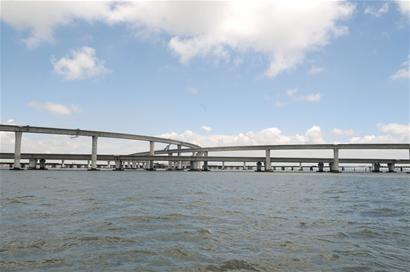 ????據(jù)介紹,青島海灣大橋除了長達26.75公里的海上段外,還有兩座漂亮的海上互通立交橋,分別是紅島互通立交橋和李村河互通立交橋。兩座橋中,只有紅島互通立交橋完全位于海上,這是全國第一座海上立交橋。李村河互通立交橋則只有一半位于海上,另一半架設在陸上的高速公路。