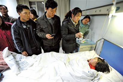 ????記者在急診觀察室見到了小周的父親,他的臉上滿是血痕,因?yàn)槊娌亢涂谇皇軅稍趽?dān)架床上說不出話來。從集裝箱貨車車輪間被拖出的小周大伯,因?yàn)轭^部受創(chuàng)腦出血,正在手術(shù)室里接受開顱手術(shù),現(xiàn)在情況仍然非常危急。小周告訴記者,肇事司機(jī)墊付了大伯急診的押金后離開醫(yī)院,剛才醫(yī)院通知需要大筆手術(shù)費(fèi)用,他們已經(jīng)通過交警聯(lián)系肇事司機(jī)前來交費(fèi)。(黃飛 于滈)
