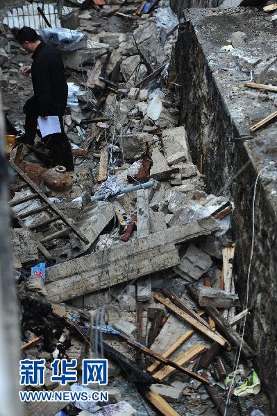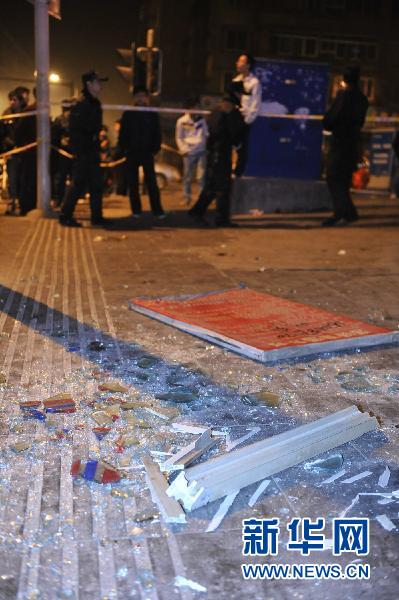 12月5日,距爆炸現場30米處的民房受到沖擊波影響,門窗已被震碎。 12月4日22時30分左右,貴州省黔東南苗族侗族自治州凱里市一網吧發生爆炸事故,據現場救援人員介紹,已經造成6人死亡,34人受傷,其中11人重傷。目前,救援還在緊張進行中(新華社記者 歐東衢 攝)