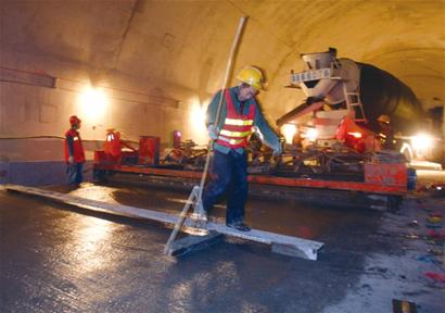 ????“斷面寬度大,使這里也成為整個海底隧道施工難度最大的區域,施工的風險也是最大的。 ”記者在現場看到,整個海底隧道右線的二次襯砌已大部分完成了,只剩下了會合處的15米左右,一臺二次襯砌的模板臺車正在工作當中。國信集團的人員介紹說,大斷面處的二次襯砌施工結束后,整個海底隧道將轉入全面的裝修和設備安裝階段。