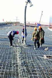 中建五局的施工人員在澆注箱梁(傅學軍 攝)