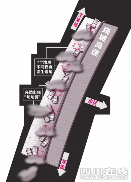 從昨日8點起,成都交警六分局事故預防處理大隊的報警電話就響個不停。大多數電話中說明的出事地點,都統一地指向了繞城高速公路。