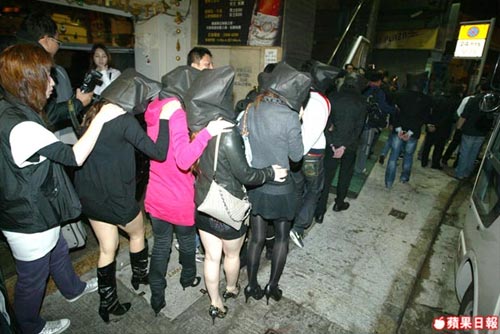 警方抓獲多名打扮性感的內地女子。圖片來源:蘋果日報