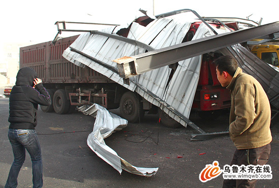 ????廠房的一名工人介紹,大風是從15日凌晨3時開始刮的,中午時分,大風灌進廠房,將1200平方米的廠房頂棚掀走,砸壞了路邊幾輛貨車。這名工人說:“鐵皮跟紙片一樣到處亂飛,就害怕砸傷人。”
