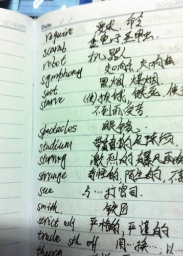 張寧海生前的英語筆記顯露出他的認真。張寧海犧牲后,他的隨身遺物只有一部用舊的便宜手機、兩支筆和一張飯卡。他的堂姐說:“他的房間很簡陋,枕巾破舊,桌上有瓶吃剩的辣椒醬。”