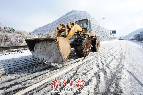 從15日下午3點(diǎn)起,京港澳高速公路韶關(guān)北段氣溫急速下降,部分路段氣溫達(dá)零下3攝氏度,路面出現(xiàn)冰凍,到22時(shí),氣溫進(jìn)一步下降,路面出現(xiàn)1厘米以上冰凍,交通開(kāi)始受阻。而從16日凌晨開(kāi)始,氣溫持續(xù)下降,最低溫度達(dá)到零下5攝氏度,京港澳公司與交警部門(mén)立即啟動(dòng)抗冰三級(jí)預(yù)案,對(duì)冰雪路段實(shí)行交通管制,撒布融雪劑,實(shí)施機(jī)械除冰,發(fā)放防滑鏈,警車(chē)壓路帶車(chē)輛通過(guò)冰凍路段。