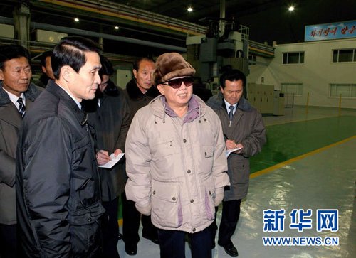 朝鮮中央通訊社22日提供的照片顯示,朝鮮最高領導人金正日近日視察熙川蓮荷機械綜合工廠。據朝鮮中央通訊社21日報道,朝鮮最高領導人金正日近日在視察熙川蓮荷機械綜合工廠時強調,全國所有部門和單位都要大力推進基于最新科技基礎上的現代化建設。新華社/朝中社