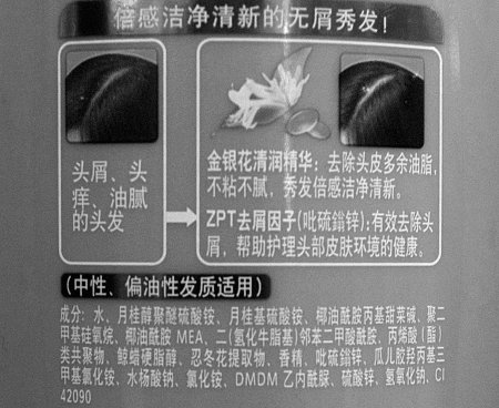 去屑洗發水含有ZPT(吡硫翁鋅)成分 記者 歐陽祖兵 攝