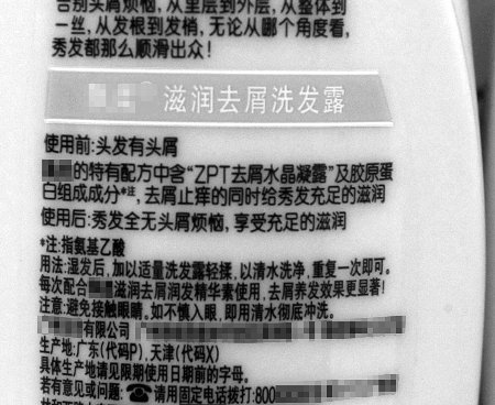 ????昨日,記者在重慶主城眾多超市隨機走訪發現,至少有6種品牌的去屑洗發產品在成分中標注含有ZPT,但并未標注ZPT的含量。記者向售貨員咨詢各種去屑洗發水的ZPT含量,卻被告知不清楚。當問及ZPT是否含有劇毒時?超市售貨員都搖頭表示不知。