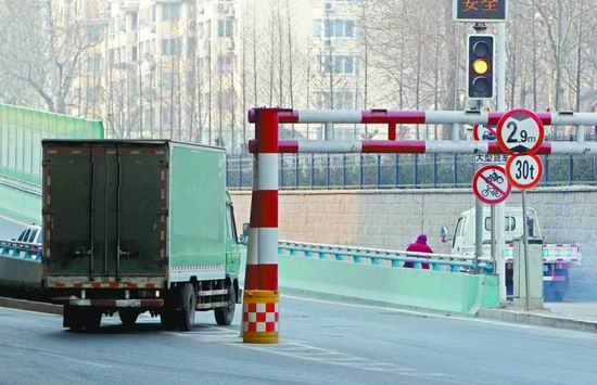 ????在鞍山路上的杭鞍快速路入口處,為了限制超高、超載車輛進(jìn)入快速路,交警部門安裝了2.9米的限高桿。1月27日,一輛超高大貨為了省事,冒險(xiǎn)從限高桿和快速路護(hù)欄中間的夾道開上快速路,非常危險(xiǎn)。記者在此處蹲守一小時(shí)發(fā)現(xiàn),超限車輛從此處上快速路的非常多。記者將問題反映給交警部門,他們表示將盡快處理。(記者 王濱)