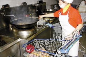 超市工作人員正在油炸過期的板鴨,準備以熟食再銷售。
