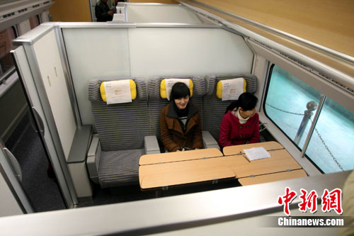 中新網(wǎng)南昌3月16日電 從3月18日起,新“二代”CRH2型動車組將正式亮相江西首條高速鐵路昌九城際,在該動車組的3號車廂增設(shè)了3個寬敞的VIP包房,讓旅客可以擁有較為獨立的私密空間。