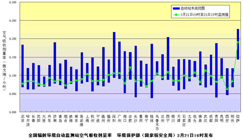 ????環境保護部(國家核安全局)發布3月21日下午全國主要城市環境輻射水平