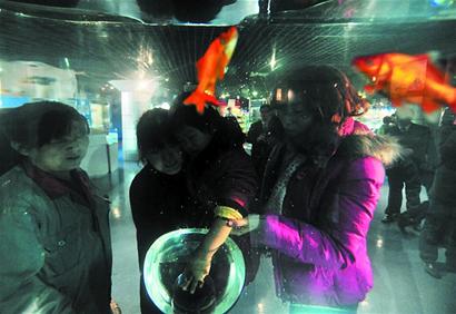 昨天,青島海底世界接待游客0.8萬人次,與去年同期基本持平。記者在海底世界看到,省內首個采用負壓原理設計的神奇“太空魚缸”吸引了不少游客的眼球。這種特大號魚缸,3.1米長、1.5米高、正面下方兩側各伸出了3只半圓型的喂食口,魚兒可以悠然地游進游出,游客可以從喂食口將手伸進去撫摸魚兒,給魚喂食,體驗與魚兒親密接觸的美妙感覺。更為神奇有趣的是,魚缸里的2噸重的水卻不會從開口處溢出,像在太空失重狀態下一樣,非常奇妙。