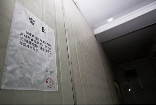 在檢查了證件后,記者被允許上樓進(jìn)入生產(chǎn)車間。此時(shí),生產(chǎn)車間也有民警執(zhí)勤,而門上也已貼上了半幅封條。辦公室內(nèi)大量文件已被相關(guān)部門取走,兩名質(zhì)監(jiān)人員仍在不停忙碌,將前晚廠房?jī)?nèi)剩下的饅頭集中到另一個(gè)房間內(nèi),并統(tǒng)一貼上封條。