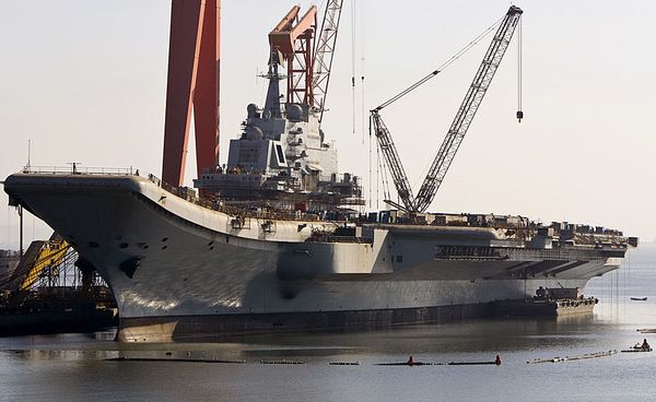 資料圖:一些網絡軍事論壇紛紛登載了在中國大連造船廠改建的“瓦良格”號航空母艦的照片。